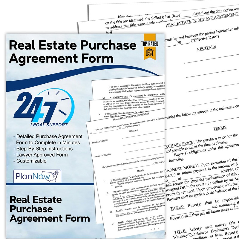 PlanNow Real Estate Purchase Agreement - Legal Form for Purchasing or Selling Property Between Individuals with Hassle-Free Instructions | Attorney Approved