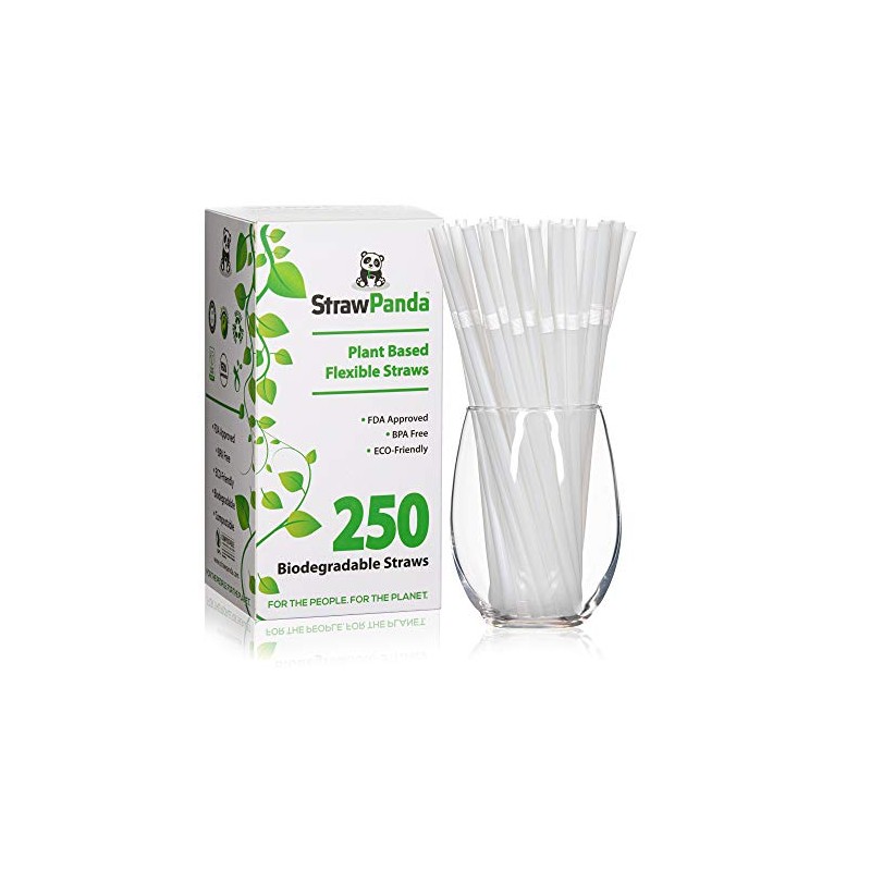 Plant Based Drinking Straws by StrawPanda- (250 Pack) an Eco Friendly Alternative to Plastic Straws, BPA Free