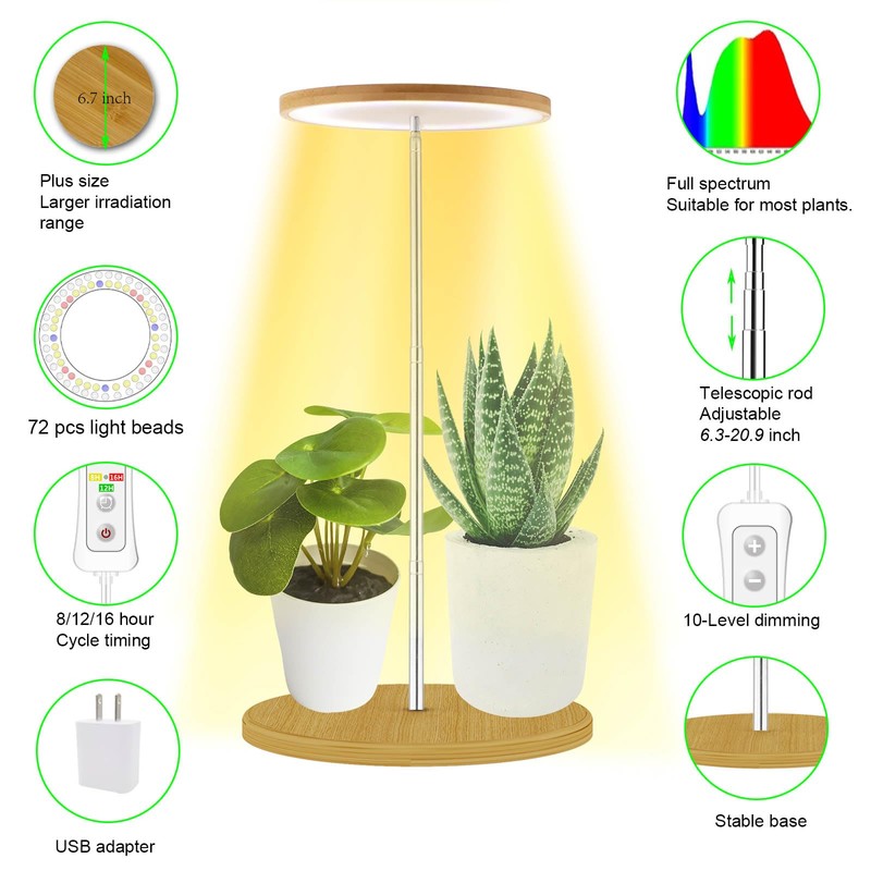 Plant Grow Light for Indoor Plant,Bamboo Mini LED Grow Light Garden,Height Adjustable,Automatic Timer with 8/12/16 Hours