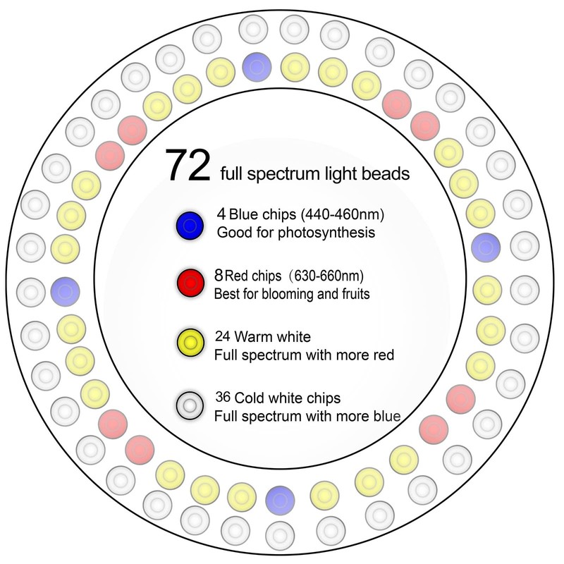 - Frees up window sills and brightens living areas:It emits all the wavelengths from 380nm to 780nm- just like natural sunlight. With the warm white high efficiency LED diodes & higher PAR output, the grow light greatly promotes indoor growth as it accelerates photosynthesis.