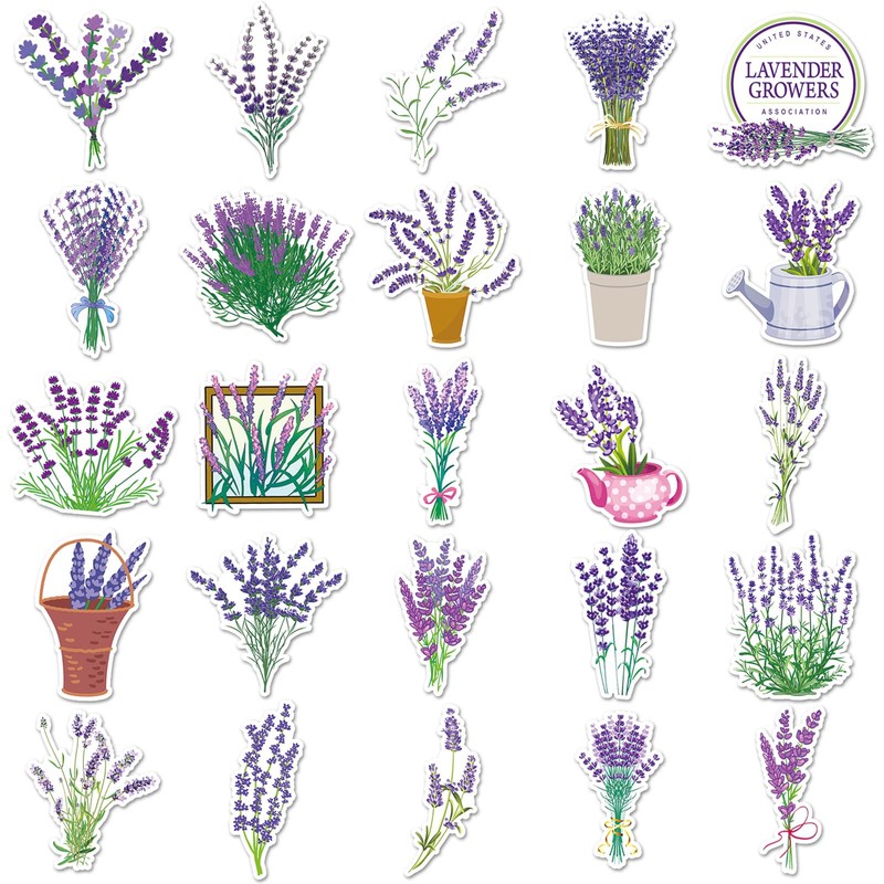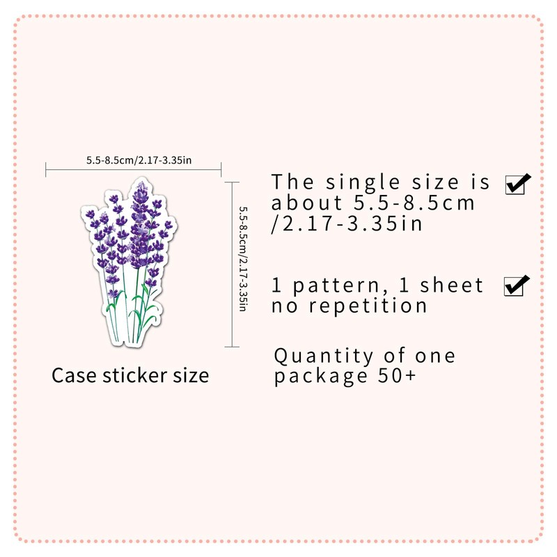 Plant & Nature Theme Sticker, 50Pcs - Chrysanthemum/Pine Cone/Lavender/Ginkgo Tree Decorative Stickers for Scrapbooking, Notebooks, Home Decoration (Lavender)