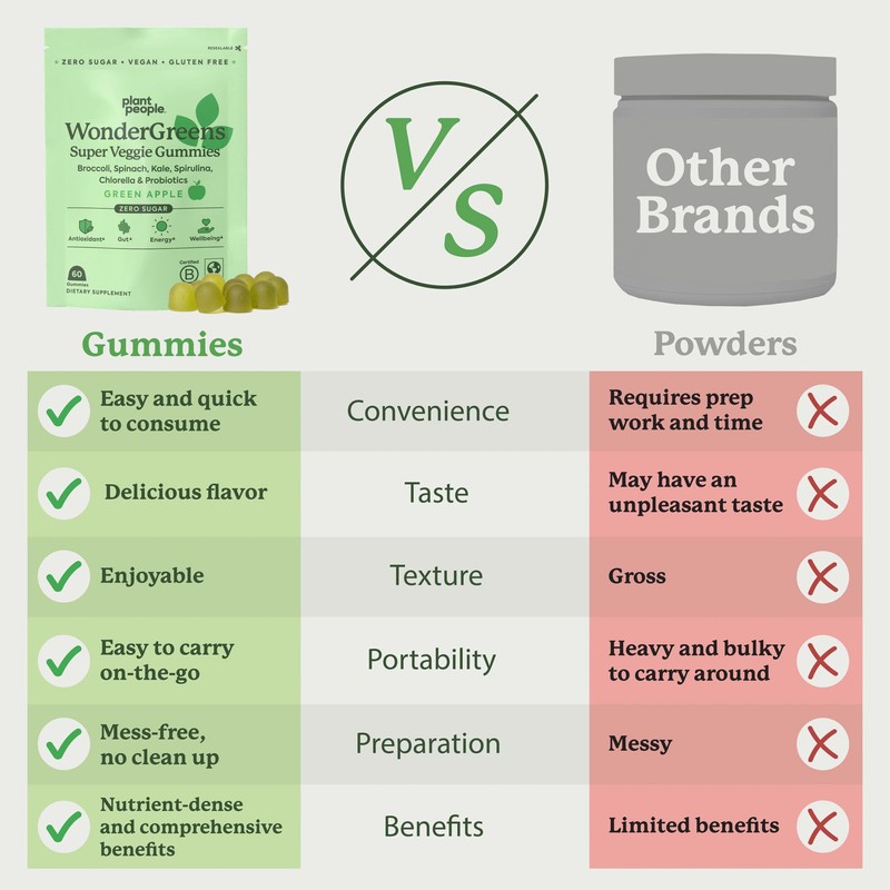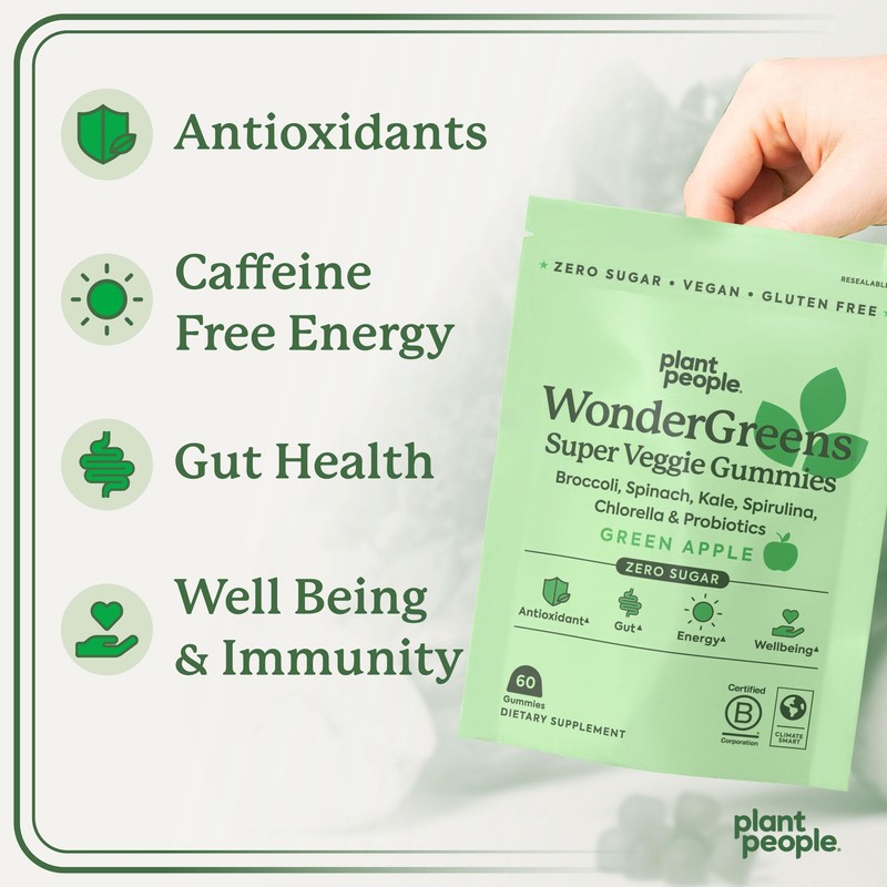 Plant People Plant People WonderGreens Veggie Gummies Super Greens with Probiotics Multivitamin Support Gummy for Wellbeing, Energy, Immune and Gut Health, Green Apple Flavor (60 Count)