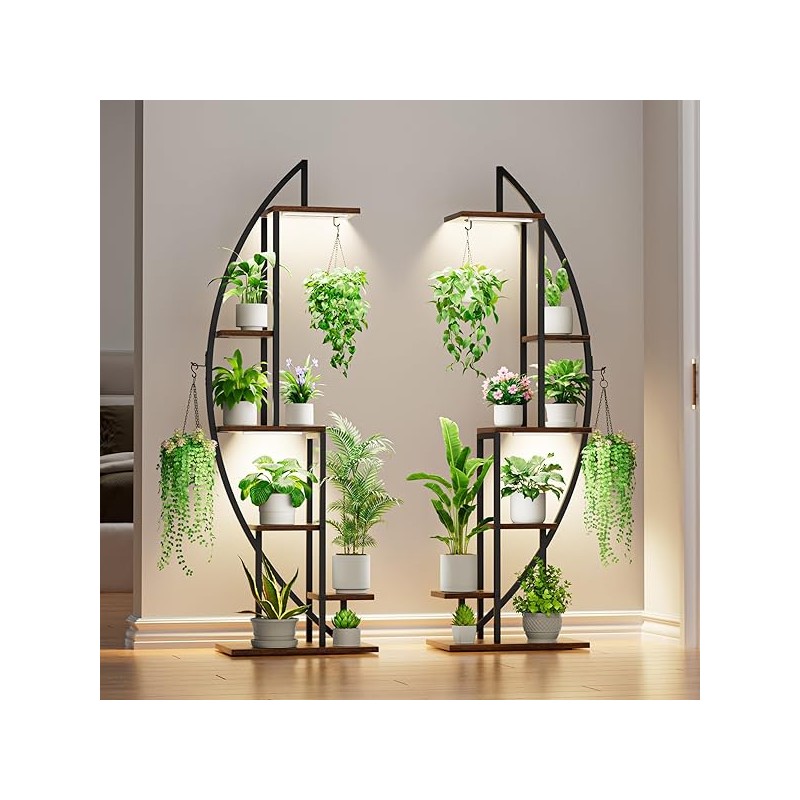 Plant Stand Indoor with Grow Lights, 6 Tiered Tall Plant Shelf, 63" Metal Plant Stand for Indoor Plants Multiple, Half-Moon Plant Rack Display Shelf, 2 Pcs Plant Holder for Living Room, Patio