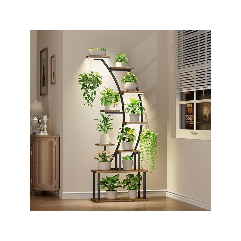 Plant Stand Indoor with Grow Lights, 63" Tall Indoor Plant Shelf, 9 Tiered Corner Plant Holder, Large Flower Display Shelves for Living Room, Bedroom, Office, Home Decor