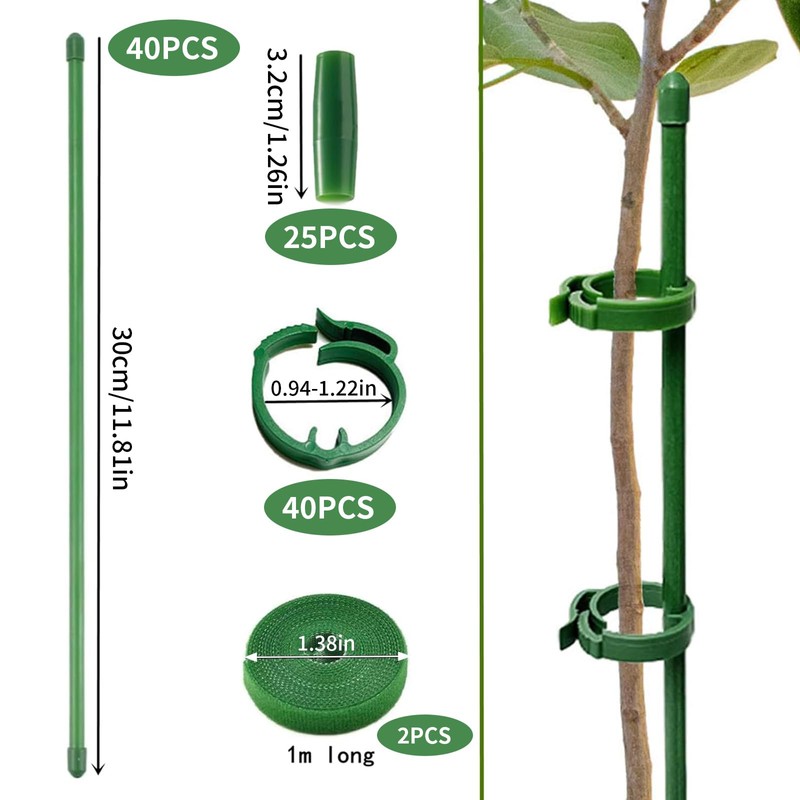 Plant Support, Trellis Aid, Pack of 40 Plant Sticks, Plant Stakes with 40 Adjustable Buckle, 25 Connectors and 1 Roll x 2 Metres of Velcro, Plant Support for Support Vegetables and Flowers (106 Pieces