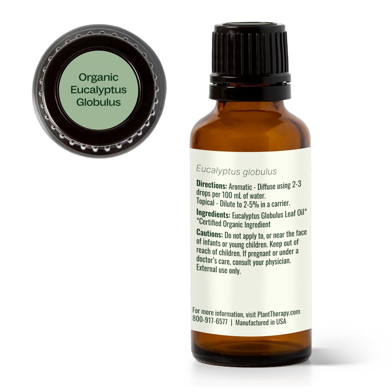 Plant Therapy Plant Therapy Organic Eucalyptus Globulus Essential Oil 100% Pure, USDA Certified Organic, Undiluted, Natural Aromatherapy, Therapeutic Grade 30 mL (1 oz)