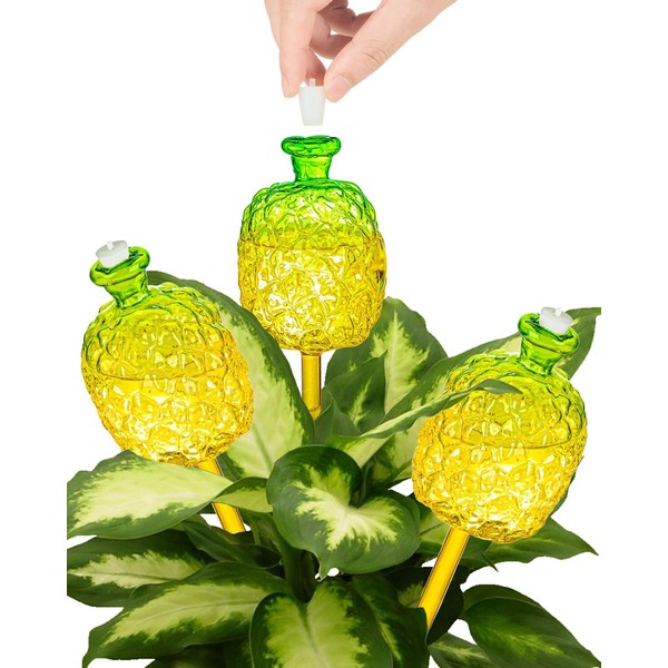 - 【Thoughtful Gift for Plant Lovers】The pineapple shaped glass watering bulbs keep the plants alive and healthy, add a beautiful charm to them and helps you to maintain an easy watering schedule
