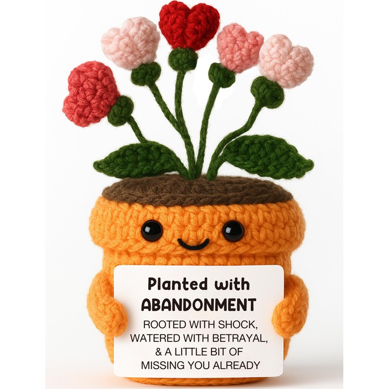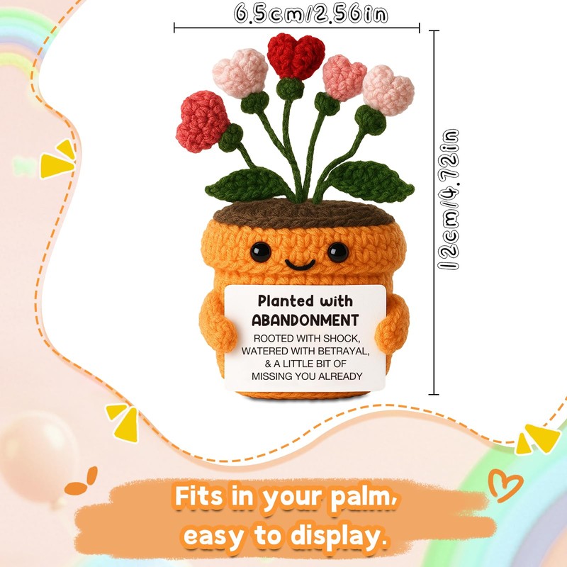 Planted with Abandonment - Funny Going Away Kindness Gifts - Emotional Positive Support Crochet Plant for Friends or Coworkers Boss for Breakup, Appreciation, Farewell, Goodbye, Leaving, miss you
