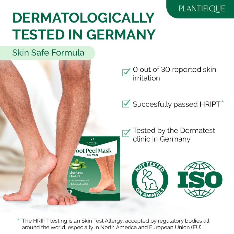 - DERMA TESTED: The foot mask undergoes rigorous quality and safety testing by the Independent German Dermatological Laboratory, which has been in operation since 1978. Our team of dermatologists specially formulated this foot exfoliator peeling mask without any harsh or harmful ingredients, such as parabens or lanolin.