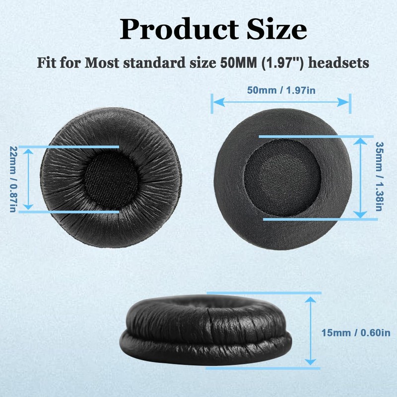 • Leatherette Earpads Size: The 50mm/1.97inches headset earpads replacement ONLY fit some special brand from Plantronics Jabra VXi Blue Parrott B250-XTS Callez Wantek Arama AGPTEK MAIRDI VoiceJoy Office Headsets and Most Standard Size Headphones perfectly with the same specification. For compatibility list in details, please refer to the description below.