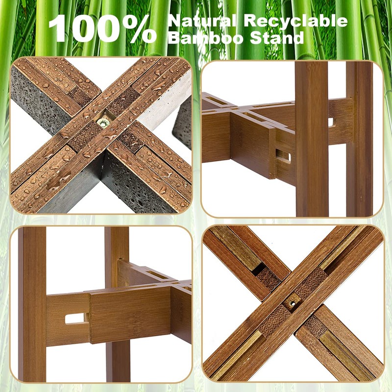 - 【Awesome Addition to Home Decor】The bamboo and wood plant stand with simple texture and beautiful color could blend well with your furniture style. Put your favorite plants in the corner more attractive, add character to our living room dining room bedroom office balcony and more.