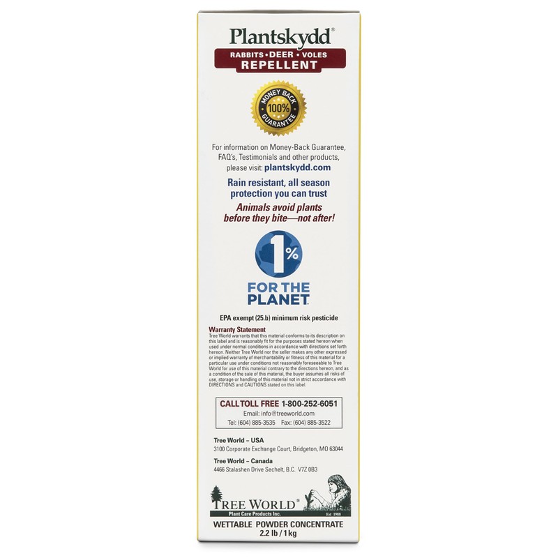 Plantskydd Animal Repellent - Repels Deer, Rabbits, Elk, Moose, Hares, Voles, Squirrels, Chipmunks and Other Herbivores; Wettable Powder Concentrate - 2.2 LB Box - Makes 2.5 Gallon Liquid (PSP-R2)