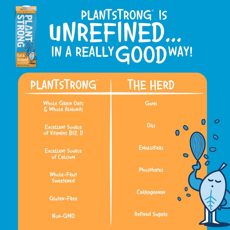 PLANTSTRONG Oat & Almond Milk 32oz (6 Pack) - NON-GMO - Plant Based, Vegan - Gluten Free Dairy Free - Shelf Stable - Lactose Free Milk - No Gums or Oils