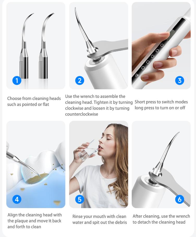 【Maintain Cleanliness】The electric tartar remover helps remove plaque, tartar, stains, and debris; making it more convenient and hygienic.