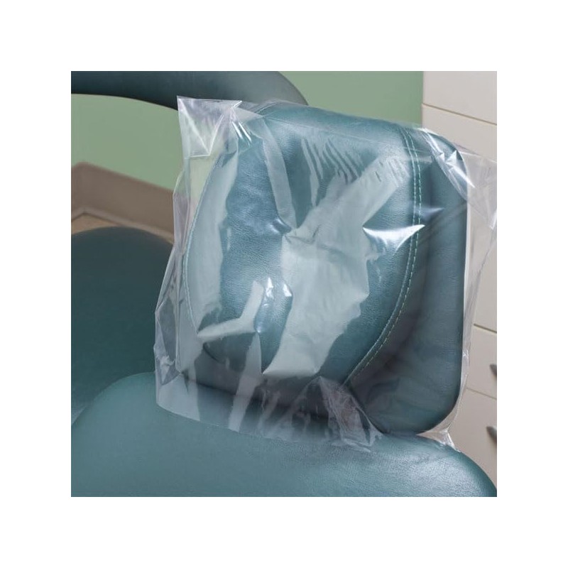 Plasdent PS650 Dental Chair Headrest Covers Clear Plastic Pleated 11 x 9.5 250/Bx