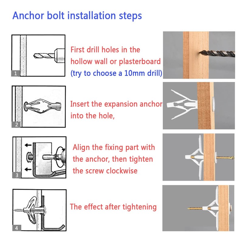 - 【Wide Application】Suitable for other hollow substrates such as plasterboard, cavity wall, fiberboard, wood board and door. For fixing lamps, hanging flower pots, wall cabinets, curtain slots, coat racks, etc.