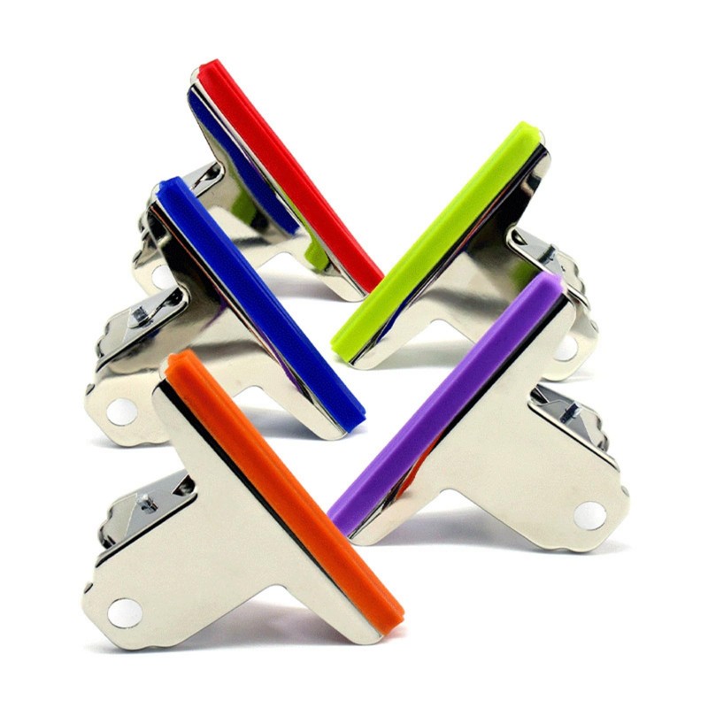 - Diese Stahlklammern sind 7.6cm lang und verfügen über einen Silikonverschluss für eine bessere Abdichtung. Sie können zum Verschließen von Lebensmitteln, zum Organisieren von Dokumenten und zum Aufhängen von Fotos verwendet werden.