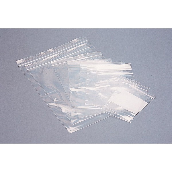 - Self locking bags with added strength on each gripper edge and white labeling block