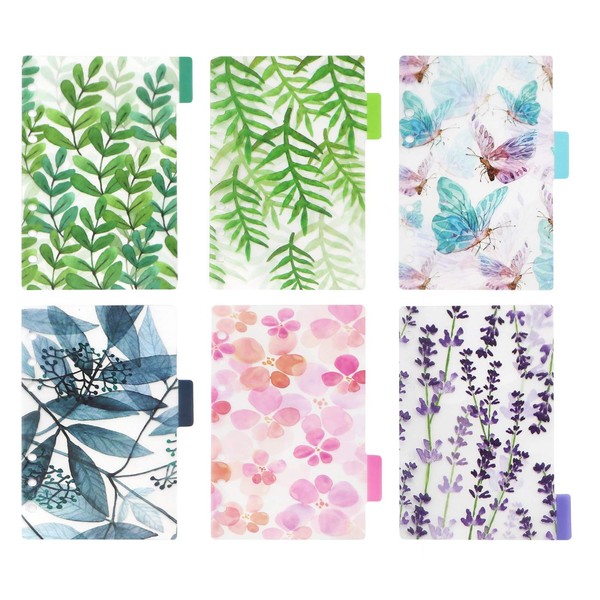 Plastic Binder Index Dividers, 6-Tab, Assorted Designs, Match for Standard A6 Size 6-Ring Planners