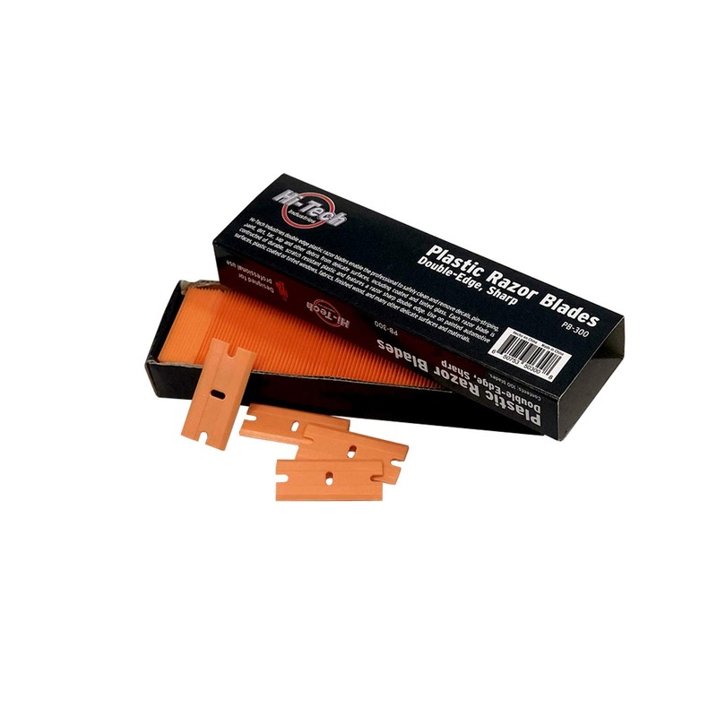 HI-TECH Plastic Razor Blades – Double-Edged Safety Scraper Blades for Car Detailing, Decal & Sticker Removal – Scratch-Free Utility (100 Pack)