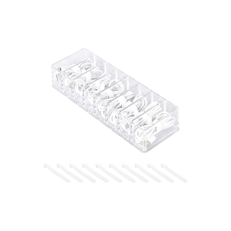 Plastic Cable Management Box with 10 Wire Ties, Clear, 8 Compartments, Office Organizer
