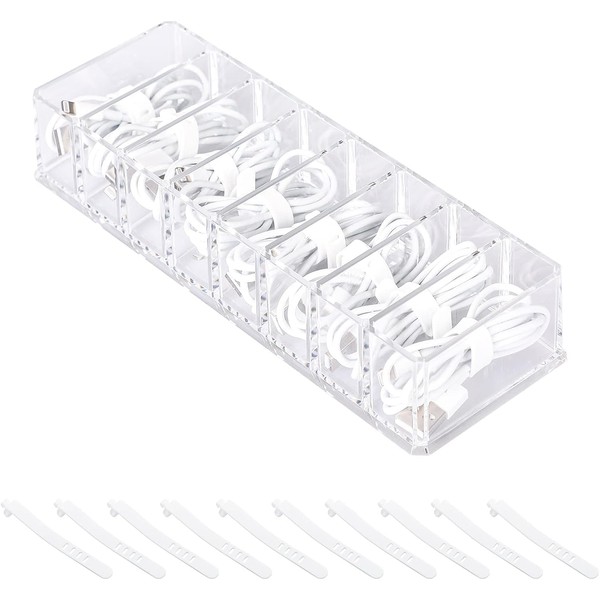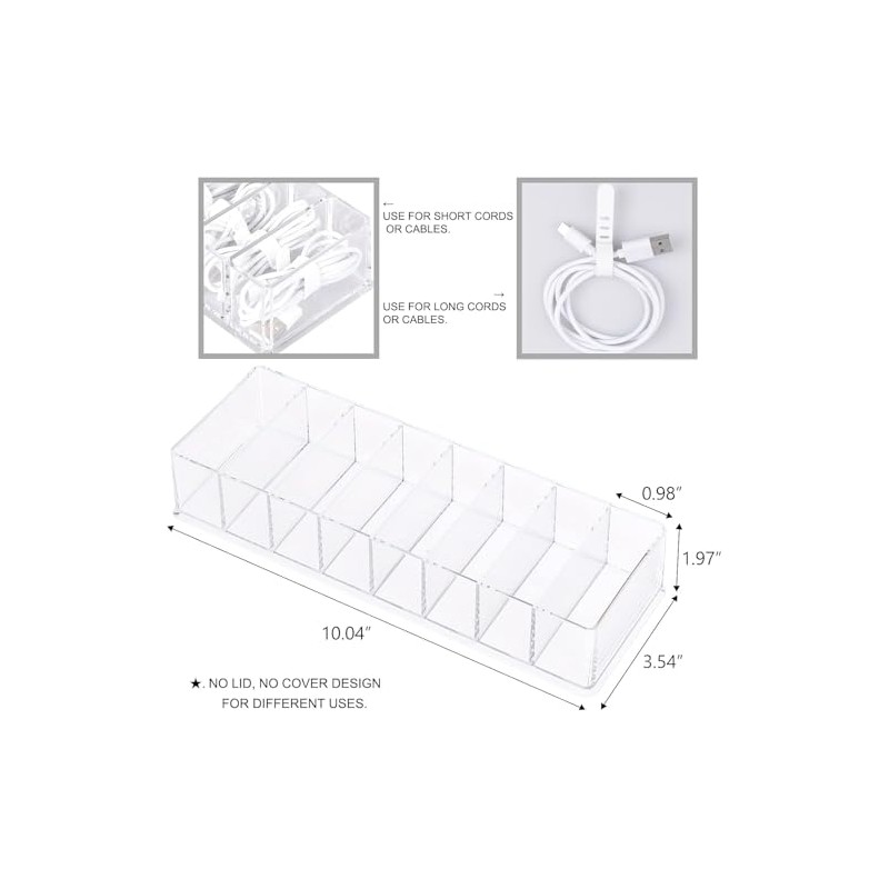 - Versatile Cable Management: This clear plastic organizer box features 8 compartments and 10 wire ties to neatly organize and store cables, cords, stationery supplies, and small electronics.
