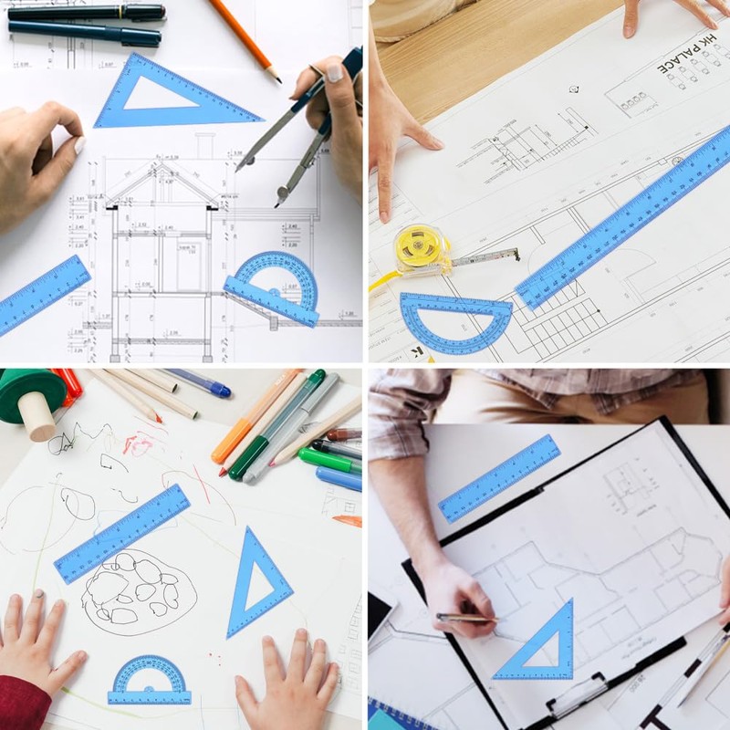 - Wide application: The geometry measuring ruler is suitable for mathematics education, classroom teaching, school, office, home, etc. It is a practical measurement and drawing tool gift for children, students, teachers, designers, architects, engineers, etc. The geometric plastic ruler is small and lightweight and will help trace and draw the geometry set lines, angles to get accurate equations.The plastic transparent ruler set is suitable for most people and is a practical measuring tool for artists, designers, architects, engineers, students, etc