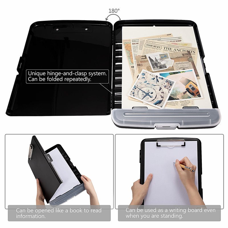 - Premium clipboard folder: clipboard with storage space is made of impact-resistant, shatter-resistant plastic, which is durable and does not break. The unique hinge and lock system can withstand everyday use.