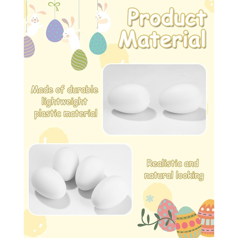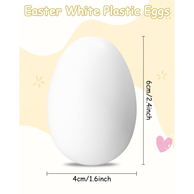 - Sizes: the size of the white plastic eggs is 2.3 x 1.5 inches (L x W).