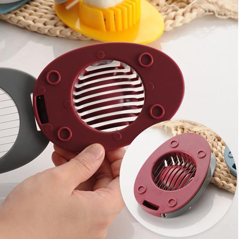 Plastic Egg Slicer with Stainless Steel,Boiled Egg Cutter,Egg Separator,Wire Egg Slicer, Multifunctional Egg Cutter for Evenly Slicing Boiled Eggs Ham Banana and Strawberry,Red