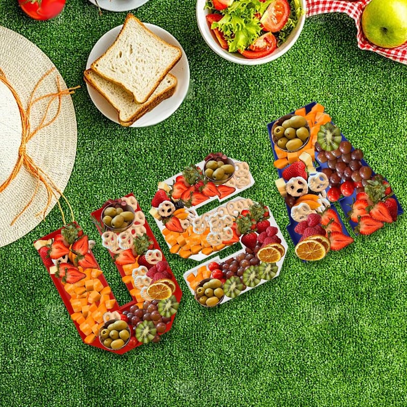 Plastic Fillable Letter Charcuterie Box, 10in Reusable Alphabet Shaped Tray for USA Independence Day, Party Decorative Serving Plates Display Candy (Letter USA)