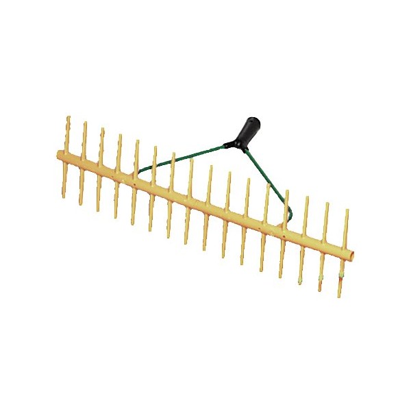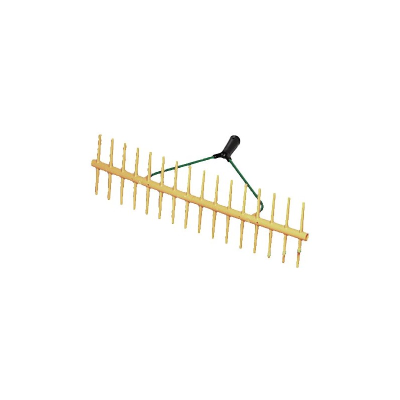 Double sided with a conical reinforcement and elastic, rounded prongs Excellent gliding properties Metal Fork Powder coated Very easy allows effortless work 16 teeth w: 64 cm Matching Tool handles: 24 x 1600 mm with conical (605788)