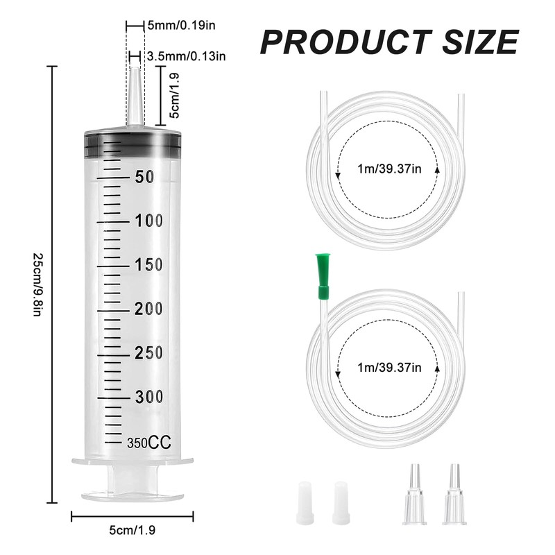 - 【Packaging Includes】 You will receive 2 x 350ml Syringe, 1 x 1m long tube, 1 x 1m long catheter with a green tip, 2 x connectors. The Feeding Syringe with large bore design to reduce feeding times, improve efficiency and easy to clean. (Note: Not for Medical Use!)