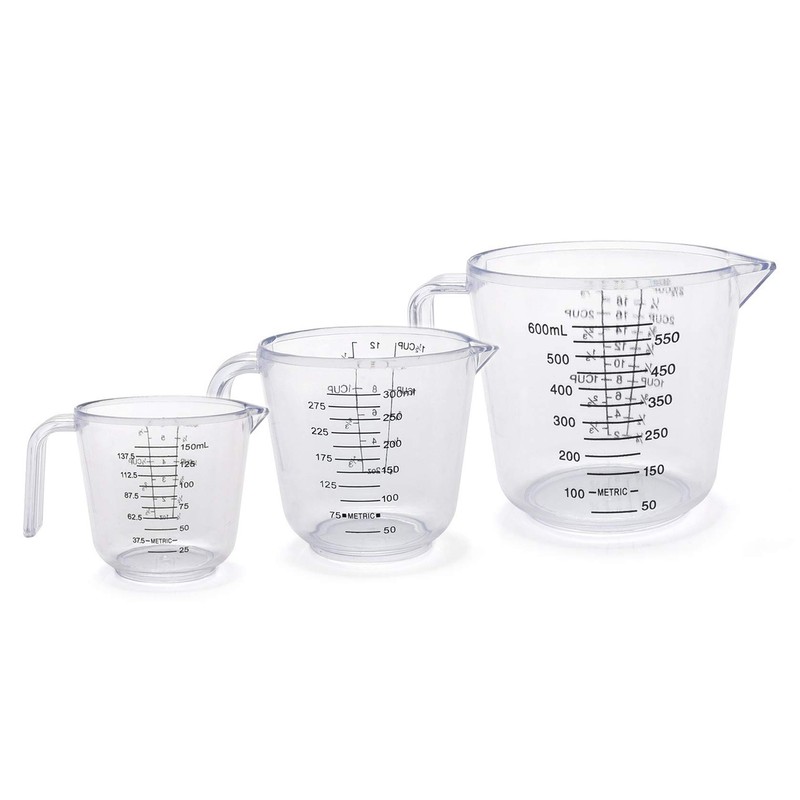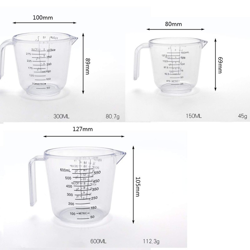 - Plastic measuring cups 3 pieces: measuring cup set includes 600ml / 300ml / 150ml, 3 cups of different capacities.