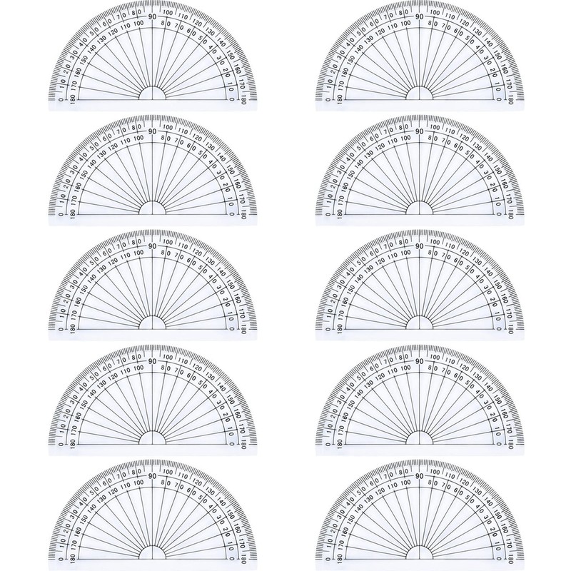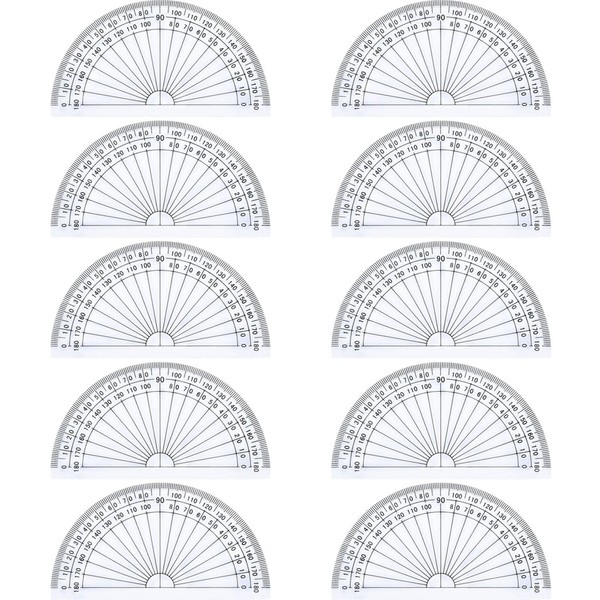 • Plastic protractor set: the protractor is made of good quality plastic; 10 cm/ 180 degree, half round shape; 10 Pack in total