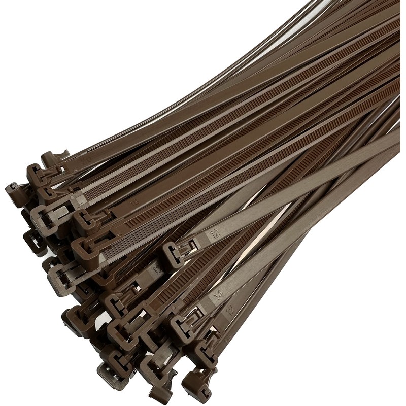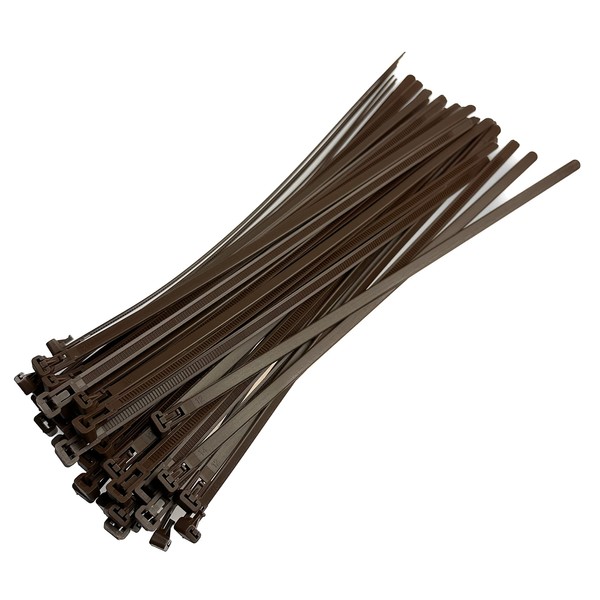 Plastic Releasable Cable Ties Premium Heavy Duty Large Reusable Zip Ties, 50-Pack (7.2mmx300mm, Brown)