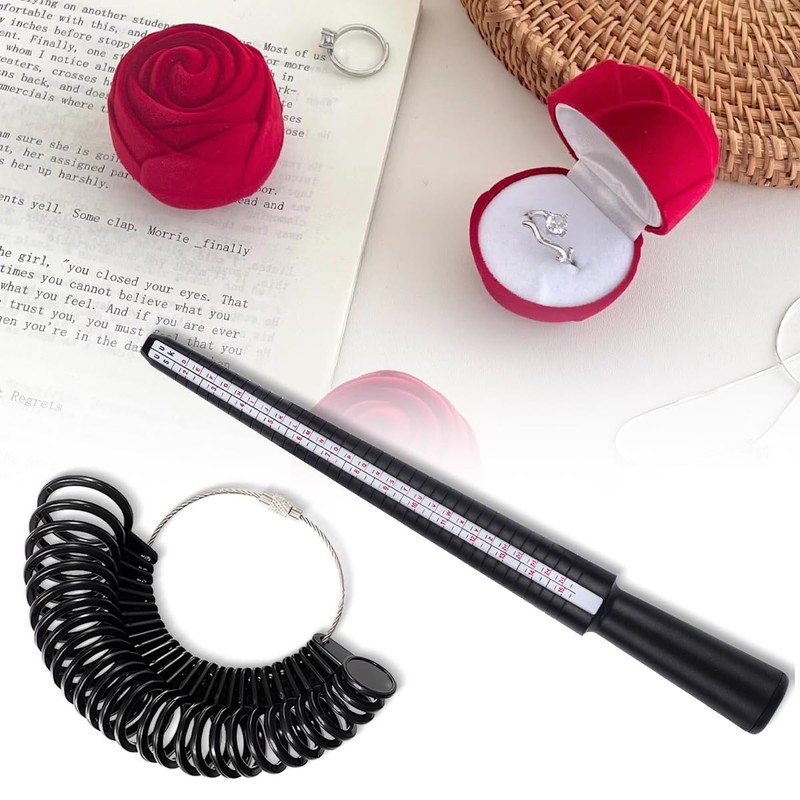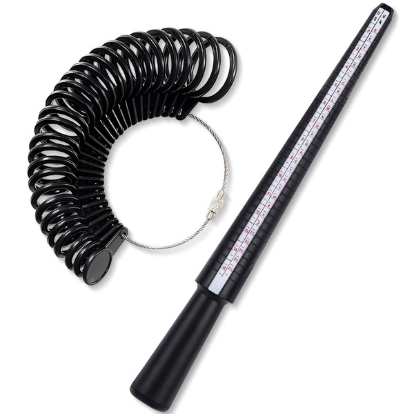- Complete Set: Includes a ring mandrel measuring stick and 27-piece ring gauge set. Perfect for measuring finger sizes for custom-made rings or resizing existing ones.