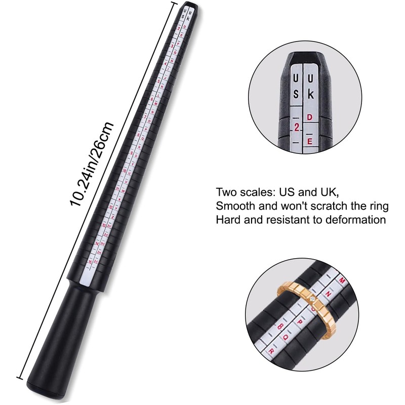 - Accurate Sizing for US & UK Standards: This durable plastic ring mandrel provides precise measurements for both US and UK ring sizes, the ring gauge is uk size. Ideal for jewelry makers and hobbyists.