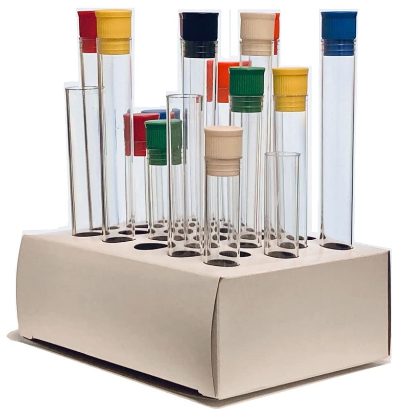 Plastic Test Tubes with Blue Caps, 16X125mm, Polystyrene, Karter Scientific (Pack of 25)