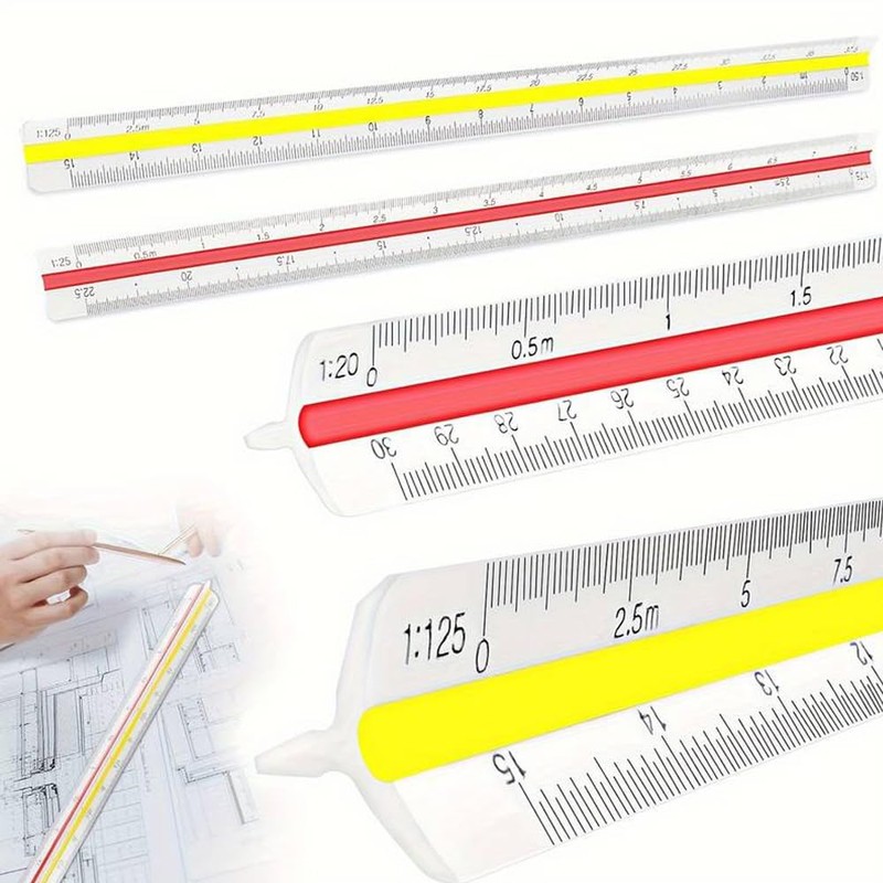 Plastic triangular scale, 30 cm scale ruler, plastic scale ruler, triangular scale 1:20, 1:25, 1:50, 1:75, 1:100, 1:125, scale ruler for architects, students and engineers