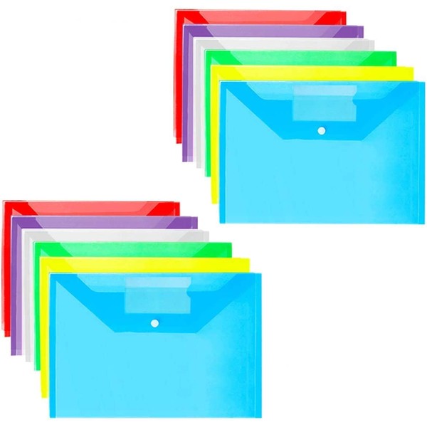 Plastic Wallets - 12 Pack A4 Plastic Folders Plastic Popper Wallet Document Folder with Button Closure