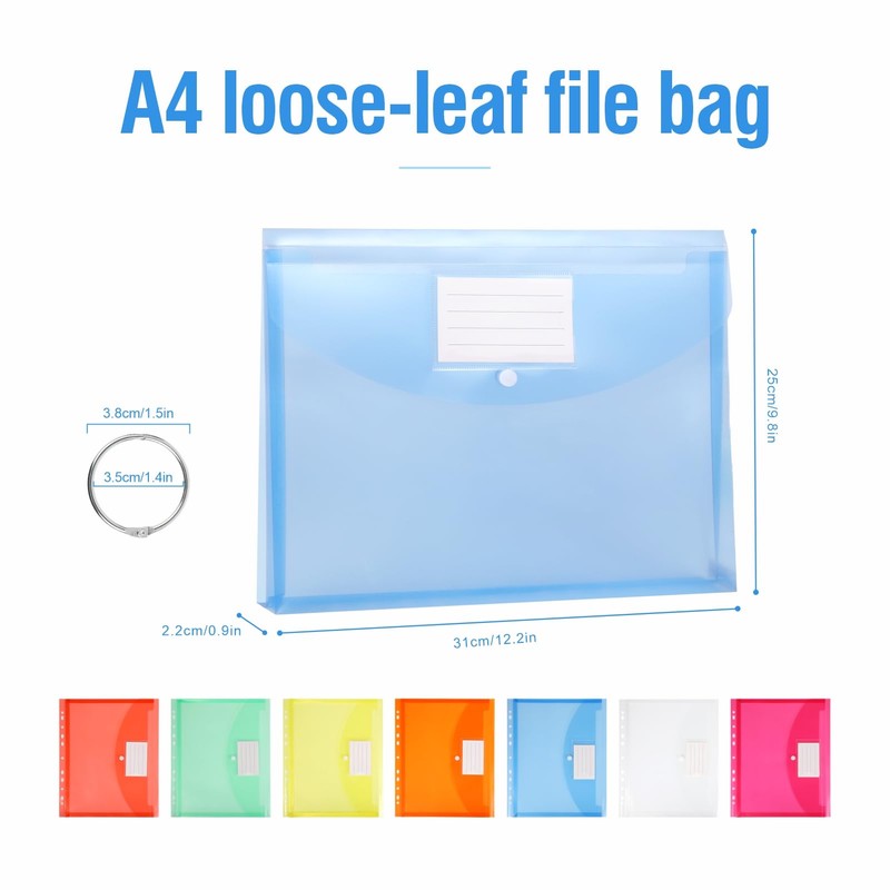 - Expandable Design: The A4 plastic wallet has an expandable binder pocket that expands to 0.8 inches/2.2 cm on the sides and can hold at least 150-200 sheets of A4 size paper. Each A4 folder comes with buttons, which can protect files very well