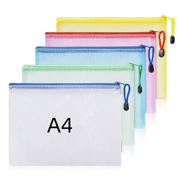 Plastic Wallets A4 Zip Wallets Ziplock Bags Plastic Mesh Document File Folder A4 Zipper Bag Zip Locked Bags - 5PCS
