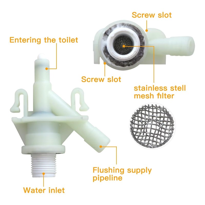 - ➤Material➤: 385311641 water valve kit made of qua -lity ABS plastic material, sturdy construction to prolong the serve life and performance of this rv toilet parts; Nicely fix and fit your toilet's hardware