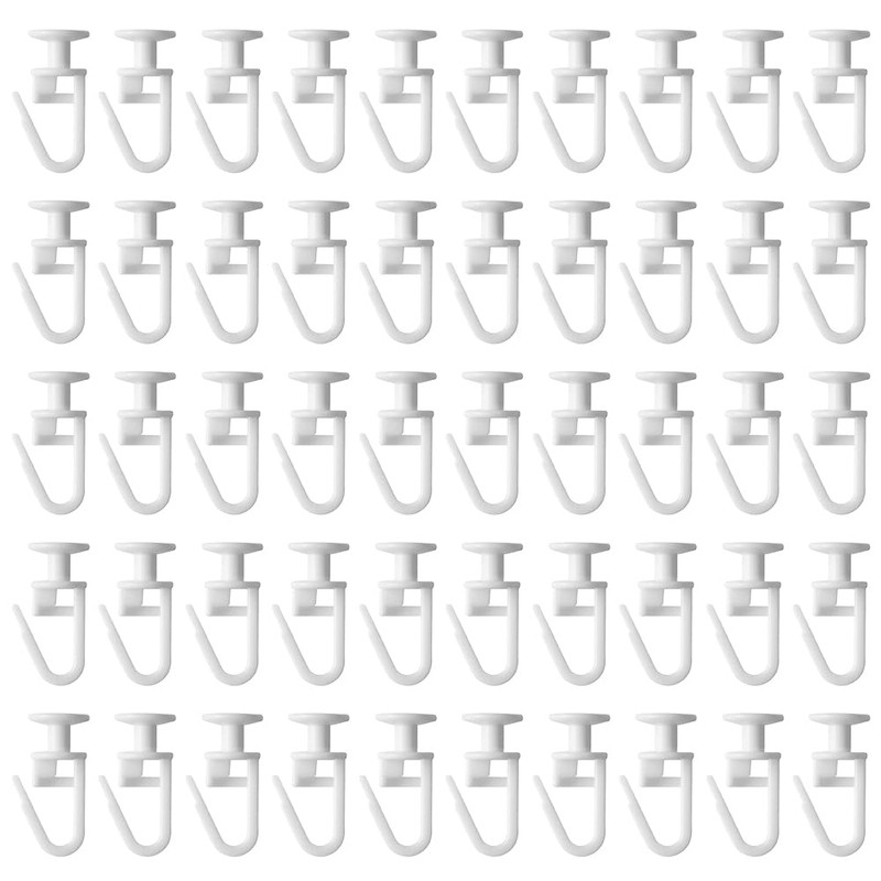 Plastic White Curtain Hooks - 50 Pcs Track Gliders for Caravan, Ceiling & Sho...