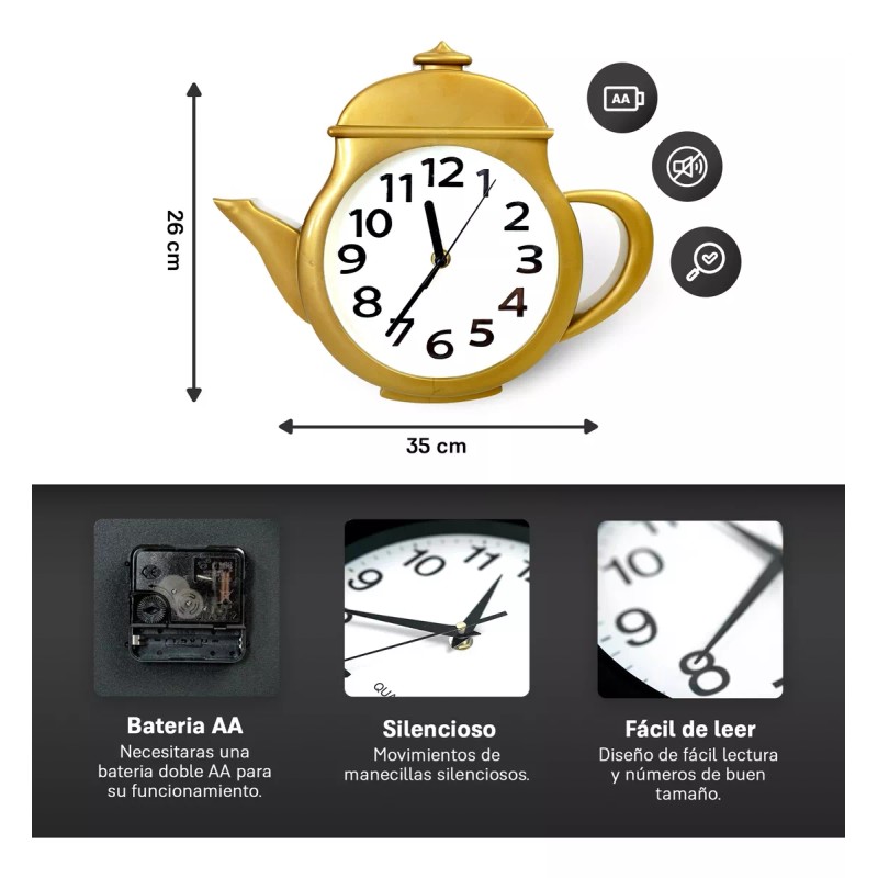 - Además de su funcionalidad, este reloj se destaca como un elemento decorativo único en su forma de tetera.