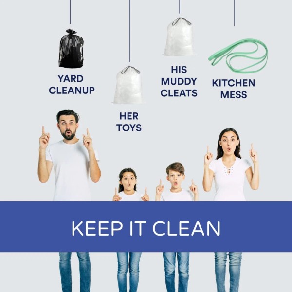 Dealing with garbage chores doesn’t need to be difficult and messy when you have the right supplies. Sometimes it’s the smallest things that make the biggest difference. Reaching into a trash can to retrieve the edges of the bag that has fallen Down is unpleasant and messy, so we’ve got a way to keep you from ever having to do it again. These rubber bands are a perfect fit for most 12-16 Gallon cans: a clever solution to this common problem. Super easy to use, too. Slip your trash bag into the can leave a couple of inches of bag overhang around the rim. Tighten the band around the can (as shown.) on trash day, dispose of the bag, but leave your giant rubber band around the can, ready for the next garbage bag.