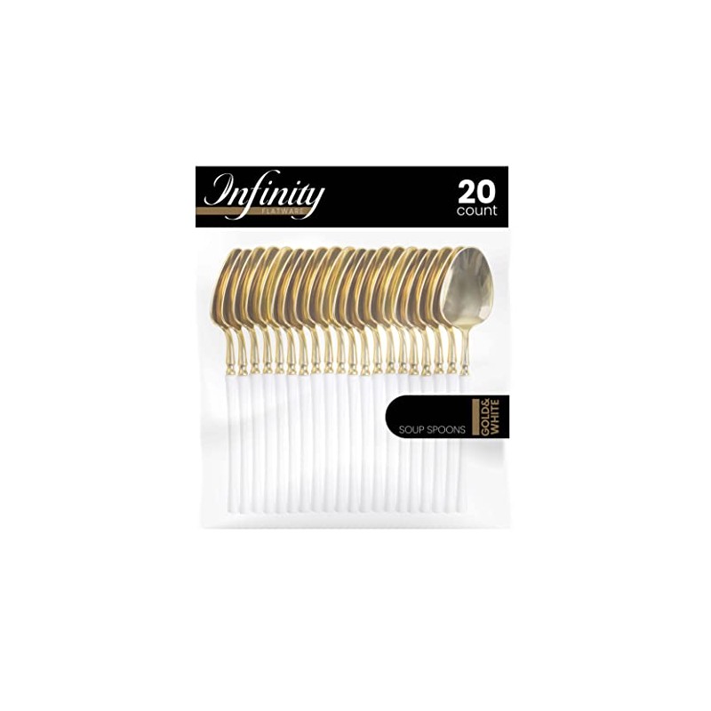 - 20 pieces per pack, this pack of gold and white two tone disposable soup spoons is classic, elegant, and well made and ideal for hosting, for parties, for elegant dinners or everyday use.