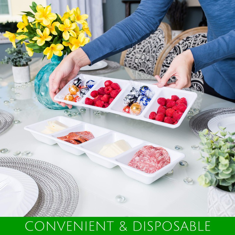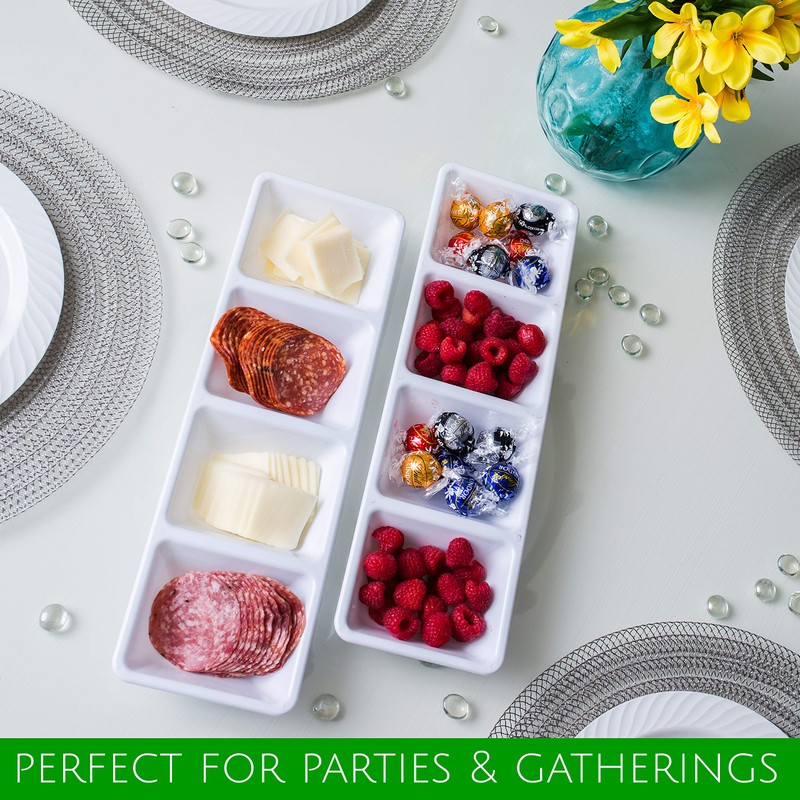 - USE: Plasticpro 4 Sectional Rectangle White Party Platter is Great for Use for Cut up Veggies, Nut Platter, Candy Platter, Veggy's & Sauce for Weddings, Family gatherings, Holidays, Birthday Party's & for Every Event