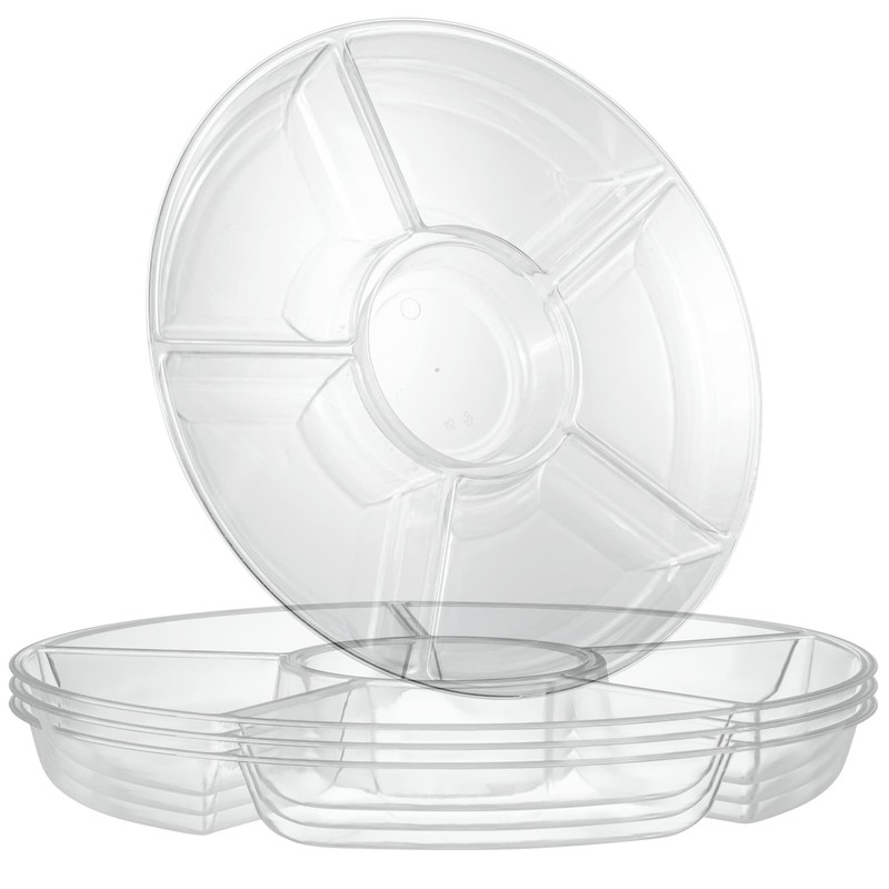PLASTICPRO 6 Sectional Round Plastic Serving Tray/Platters Clear Pack of 2